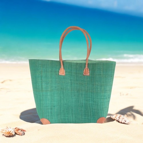 Αυτή η χειροποίητη ψάθινη τσάντα ξεχωρίζει για το ιδιαίτερο σμαραγδί πράσινο χρώμα της, προσδίδοντας μια φρέσκια και κομψή νότα σε κάθε σας εμφάνιση. Διαθέτει δερμάτινες λεπτομέρειες σε καφέ χρώμα στις λαβές και τις γωνίες, δημιουργώντας μια όμορφη αντίθεση και προσδίδοντας μια πολυτελή αίσθηση. Είναι αρκετά ευρύχωρη, ιδανική για τα ψώνια, την παραλία, τις καθημερινές σας ανάγκες ή ακόμα και για ειδικές περιστάσεις.