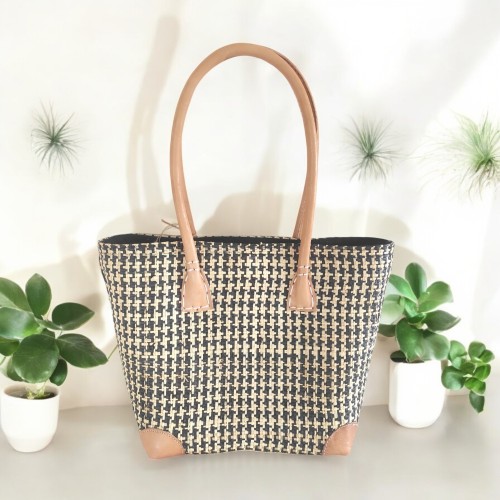Το κλασικό σχέδιο σε μαύρο και μπεζ χρώμα αυτής της ψάθινης τσάντας, προσθέτει μια διαχρονική και κομψή πινελιά. Το σχέδιο είναι ένα κλασικό μοτίβο που δεν φεύγει ποτέ από τη μόδα και προσδίδει μια αίσθηση πολυτέλειας. Συνδυάζει την κλασική κομψότητα με μια boho chic αισθητική, καθιστώντας την ιδανική για διάφορα στυλ και περιστάσεις. Μπορείτε να τη συνδυάσετε με ένα casual ντύσιμο για μια boho εμφάνιση ή με ένα πιο επίσημο ντύσιμο για μια κομψή εμφάνιση. Διαστάσεις: Πλάτος:15cm Μήκος:26cm Υψος:22cm