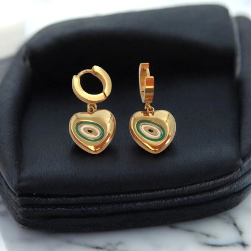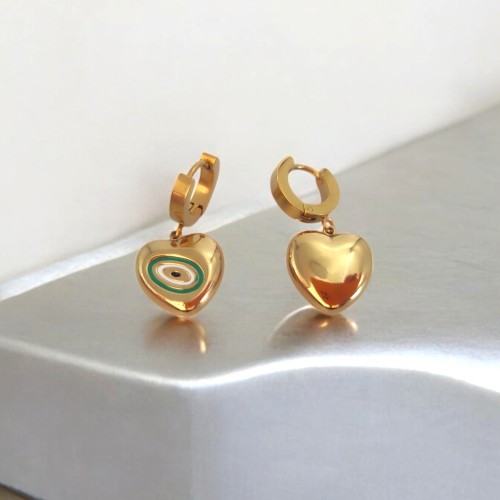 Σουλαρίκια κρεμαστή Καρδιά και πράσινο μάτι