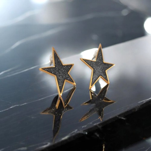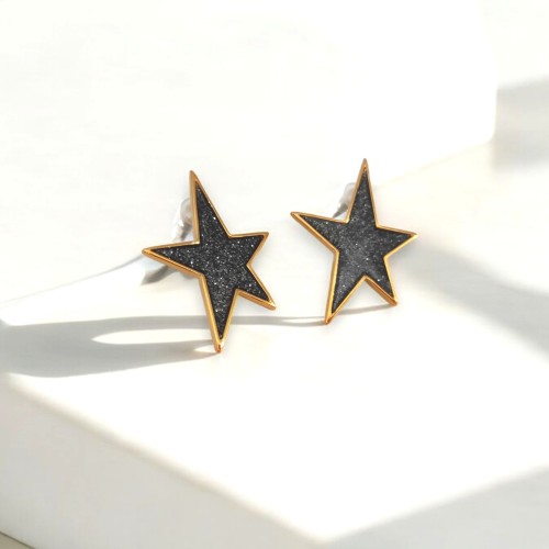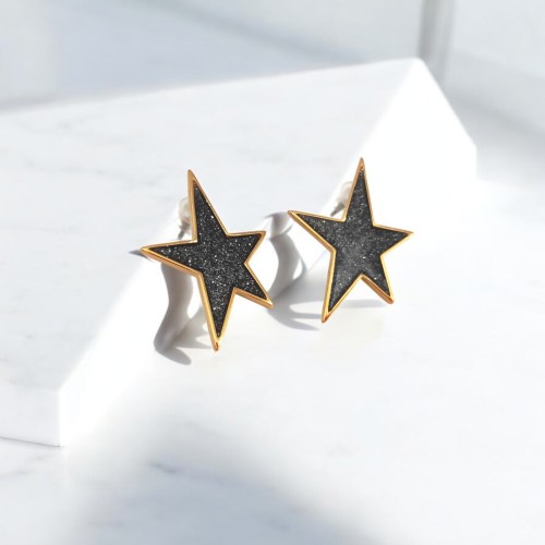 Σκουλαρίκια Μεγάλα Αστέρια με ανθρακί glitter από επίχρυσο ζάμακ και υποαλλεργικό κούμπωμα από καρφάκι τιτανίου. Ιδανικά για βραδυνές εμφανίσεις ή για να προσθέσετε μια glam πινελιά σε ένα πιο casual look.