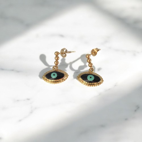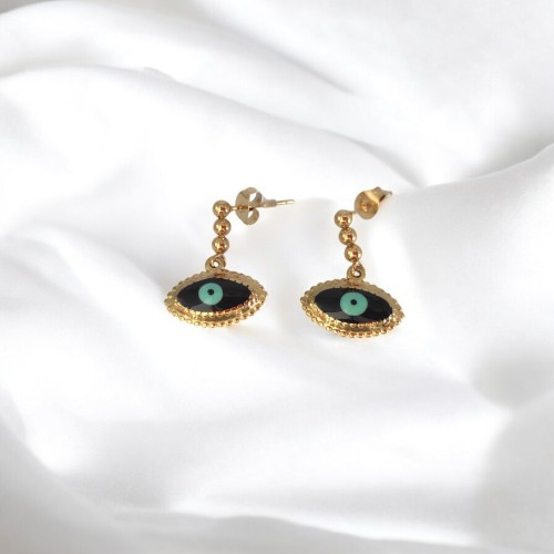 Ατσάλινα Σκουλαρίκια κρεμαστά Ροζέτα με Μαύρο Σμάλτο και μάτι με υποαλλεργικό κούμπωμα από καρφάκι τιτανίου. Πρσφέρουν μια διακριτική αλλά και εντυπωσιακή πινελιά σε κάθε εμφάνιση συνδυάζοντας την παράδοση και την σύχγρονη αισθητική.