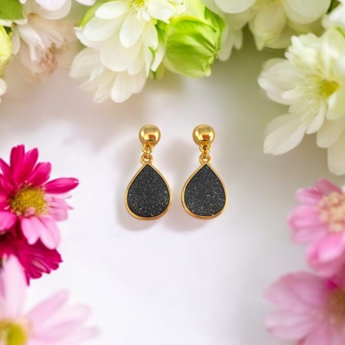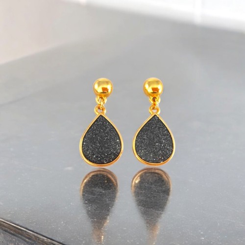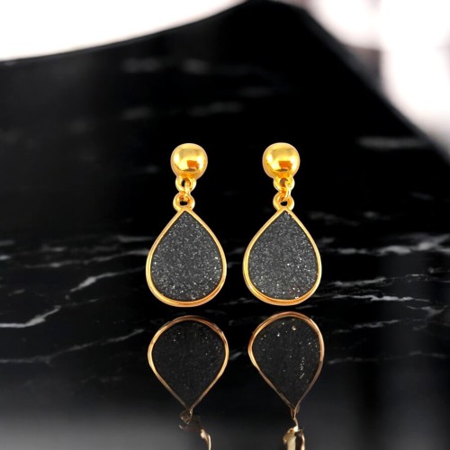 Σκουλαρίκια σύνθεση σταγόνα με ανθρακί glitter από επίχρυσο ζαμακ και υποαλλεργικό κούμπωμα από καρφάκι τιτανίου. Λαμπερά κρεμαστά σκουλαρίκια που προσφέρουν ασφαλή εφαρμογή και προσδίδουν μια κομψή πινελιά σε κάθε εμφάνιση. Είναι ιδανικά για καθημερινή χρήση ή για πιο επίσημες περιστάσεις.