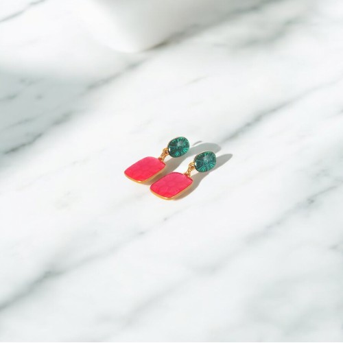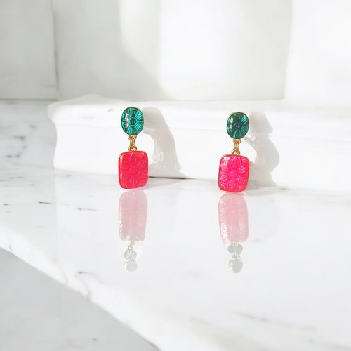 Σκουλαρίκια Ροζ Πινελιές με Πράσινη Λάμψη