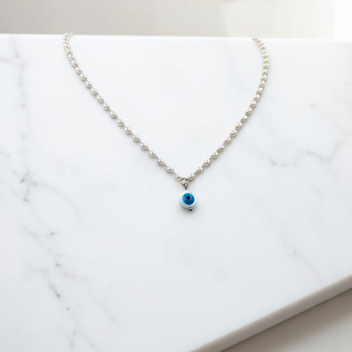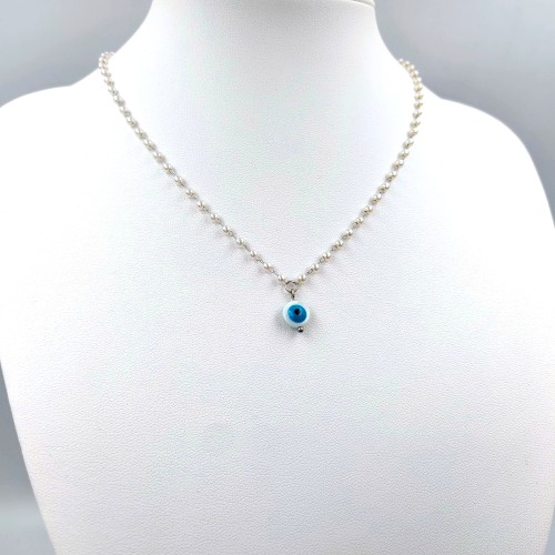 Κολιέ με Λευκές Πέρλες και Μάτι