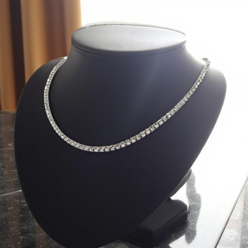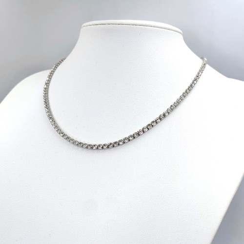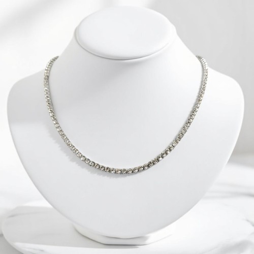 Κολιέ ατσάλινο ριβιέρα με στρας. Έχει μήκος 40cm+ 5cm extension.Το κολιέ ριβιέρα "Αστρική Λάμψη", είναι κατασκευασμένο από ανθεκτικό ατσάλι και διακοσμημένο με λαμπερά στρας, αυτό το κόσμημα θα προσθέσει μια πινελιά πολυτέλειας σε κάθε εμφάνιση.