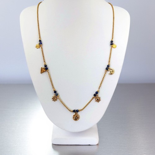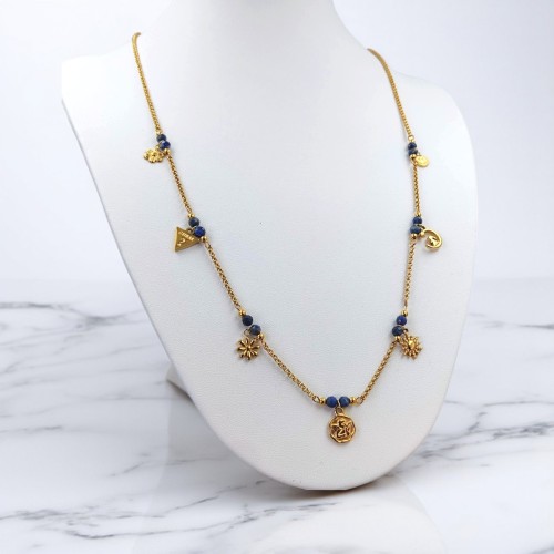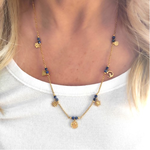 Κολιέ ατσάλινο με κρεμαστά στοιχεία. Έχεί μήκος 65cm + 5cm extension. Αυτό το μοναδικό κολιέ σας επιτρέπει να εκφράσετε την προσωπικότητά σας και να κρατήσετε κοντά σας τις αγαπημένες σας στιγμές. Διαθέτει μια κομψή αλυσίδα, από την οποία κρέμονται διάφορα charms, καθένα με το δικό του ξεχωριστό νόημα.
