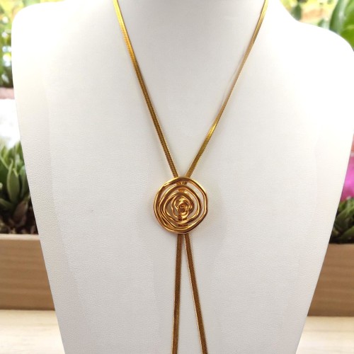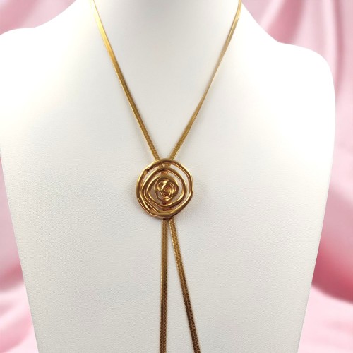 Κολιέ με Πλακέ Αλυσίδα και Ρυθμιζόμενο Λουλούδι