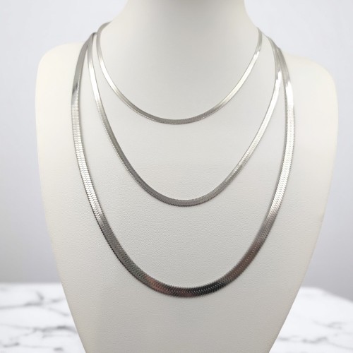 Κολιέ με Τριπλή Ατσάλινη Αλυσίδα "Snake" σε ασημί