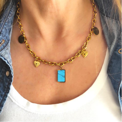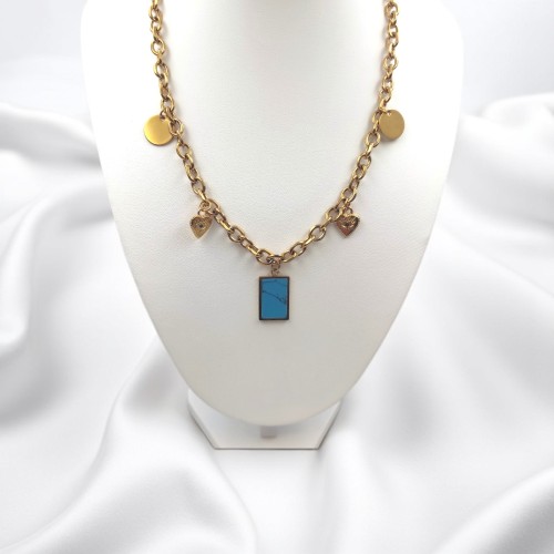 Κολιέ Ατσάλινο με Charms και Τυρκουάζ