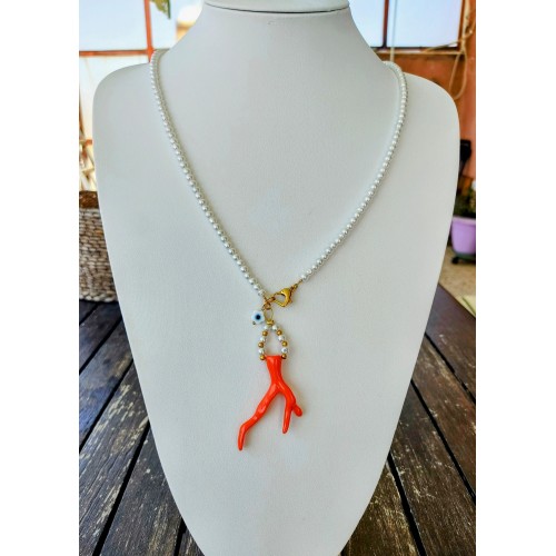 Καλοκαιρινό Κολιέ "Κοράλλι & Μαργαριτάρια" με Ματάκι
