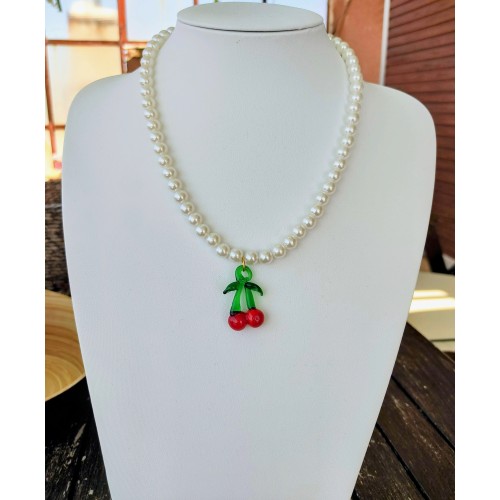 Κολιέ Μαργαριτάρια με Κερασένιο Charm