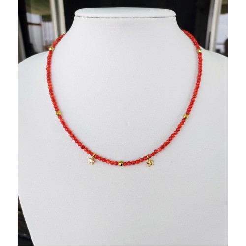 Ετοιμαστείτε για το καλοκαίρι με αυτό το χαρούμενο και κομψό κολιέ! Οι φωτεινές κόκκινες χάντρες συνδυάζονται αρμονικά με τρεις γοητευτικούς χρυσούς αστερίες, δημιουργώντας ένα μοναδικό αξεσουάρ που θα σας συνοδεύσει ιδανικά στις διακοπές και τις βόλτες σας δίπλα στη θάλασσα. Προσθέστε μια νότα θαλασσινής ανεμελιάς στο στυλ σας και ξεχωρίστε!