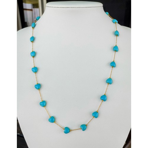 Κολιέ με Τυρκουάζ Καρδιές & Χρυσή Αλυσίδα