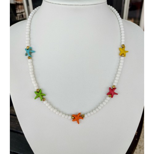 Καλοκαιρινό Κολιέ "Αστέρι της Θάλασσας" με Τιρκουάζ και Λευκές Χάντρες