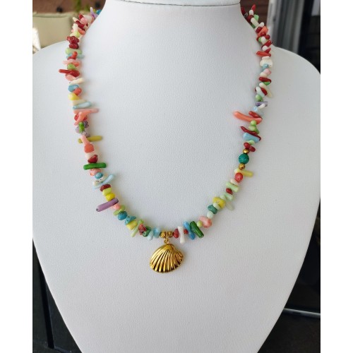 Κολιέ "Καλοκαιρινός Βυθός" με Πολύχρωμα Κοράλλια & Χρυσό Κοχύλι