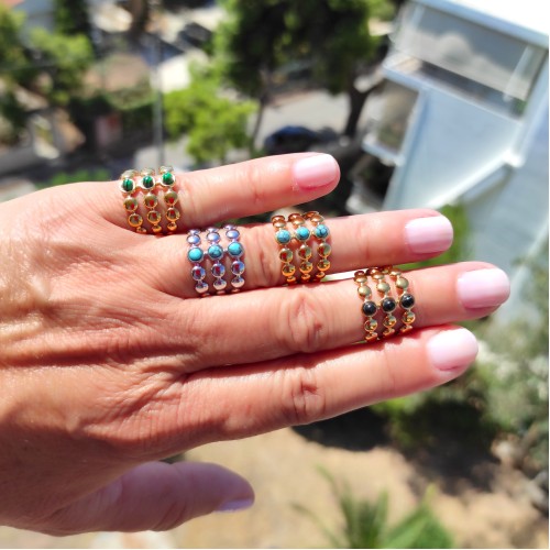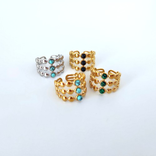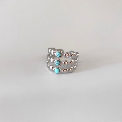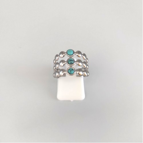 Ένα μοντέρνο και ανθεκτικό δαχτυλίδι που προσαρμόζεται σε κάθε δάχτυλο. Κατασκευασμένο από υψηλής ποιότητας ατσάλι, αυτό το δαχτυλίδι με τις τρεις σειρές και τις διακριτικές τυρκουάζ λεπτομέρειες είναι ανοιγόμενο, προσφέροντας άνετη εφαρμογή χωρίς περιορισμούς στο μέγεθος. Ιδανικό για καθημερινή χρήση, καθώς δεν οξειδώνεται και διατηρεί το χρώμα του.