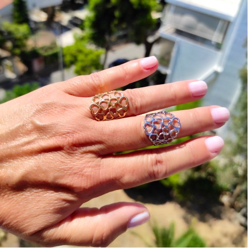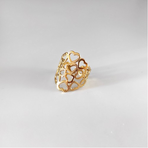 Εκφράστε την αγάπη και την τρυφερότητα με αυτό το υπέροχο ατσάλινο δαχτυλίδι σε λαμπερό χρυσό τόνο! Το περίτεχνο σχέδιο από αλληλοσυνδεόμενες καρδιές δημιουργεί ένα ρομαντικό και κομψό αποτέλεσμα, ιδανικό για κάθε εμφάνιση. Είναι ανοιγόμενο, χωρίς περιορισμό στο νούμερο, εφαρμόζοντας άνετα σε όλα τα δάχτυλα. Κατασκευασμένο από ανθεκτικό ατσάλι, δεν μαυρίζει και διατηρεί τη χρυσή του λάμψη αναλλοίωτη στον χρόνο. Το τέλειο δώρο για εσάς ή για ένα αγαπημένο πρόσωπο!