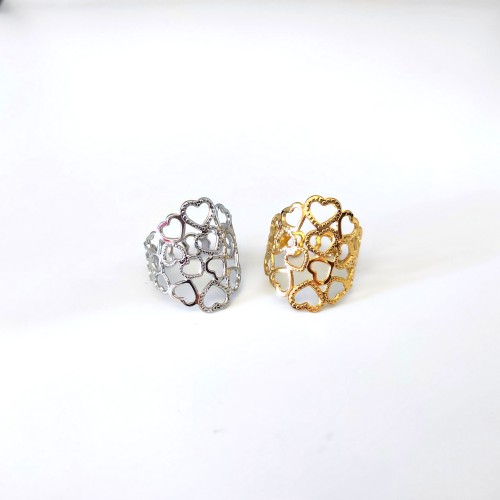 Εκφράστε την αγάπη και το στυλ σας με αυτό το πανέμορφο ατσάλινο δαχτυλίδι! Ο περίτεχνος σχεδιασμός με τις αλληλένδετες καρδιές δημιουργεί ένα μοναδικό κόσμημα που μαγνητίζει τα βλέμματα. Κατασκευασμένο από υψηλής ποιότητας ανοξείδωτο ατσάλι σε ασημί απόχρωση, είναι εξαιρετικά ανθεκτικό. Χάρη στην ανοιγόμενη, ρυθμιζόμενη φόρμα του, ταιριάζει σε όλα τα μεγέθη, προσφέροντας άνεση και στυλ χωρίς περιορισμούς. Ιδανικό για να προσθέσετε μια ρομαντική πινελιά σε κάθε εμφάνιση!