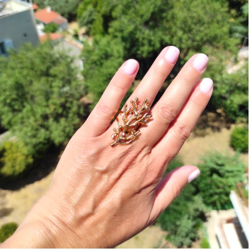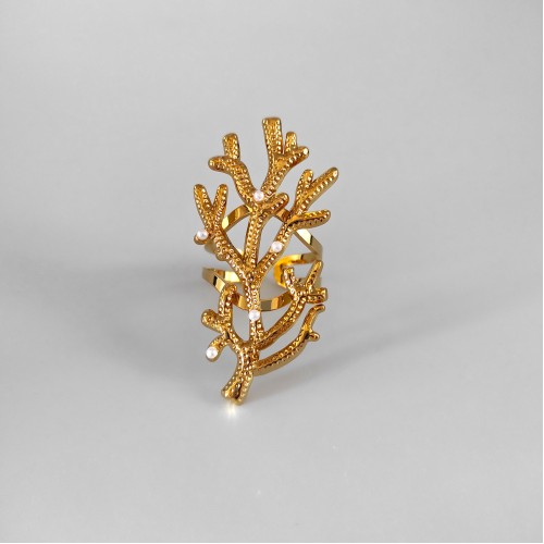 Ατσάλινο Δαχτυλίδι "Κοράλλι" με Πέρλες σε χρυσό
