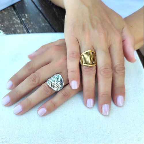 Ατσάλινο Δαχτυλίδι "Κυματιστές Γραμμές"σε χρυσό