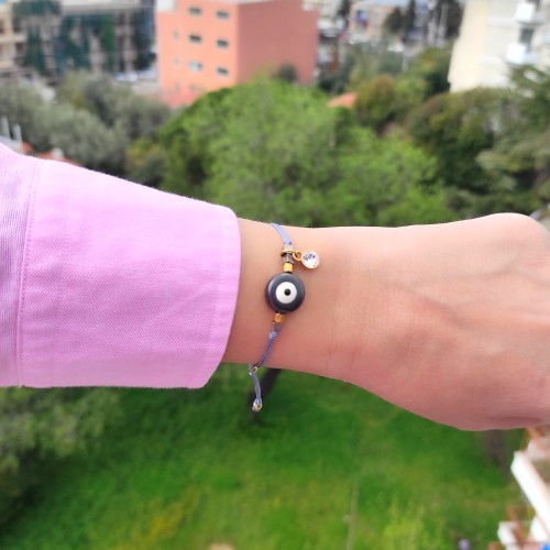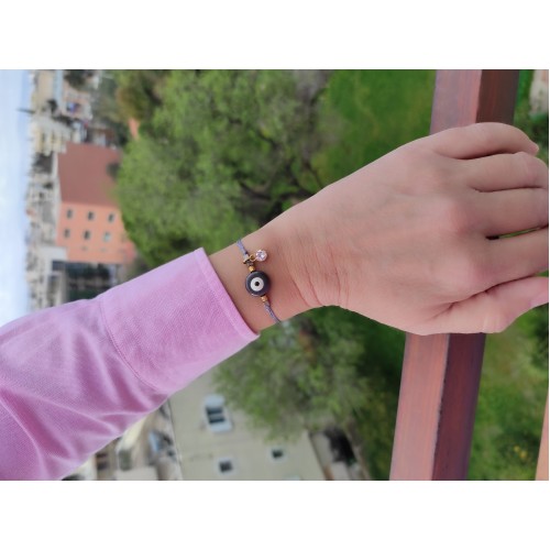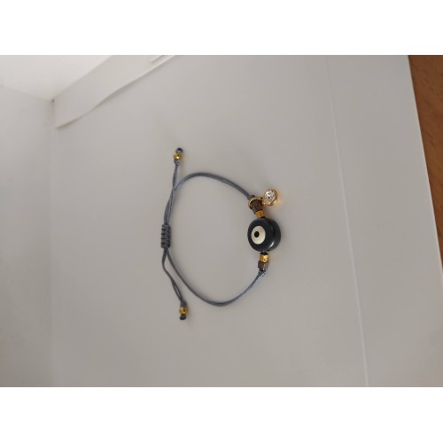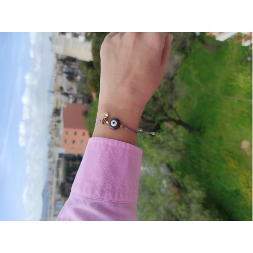 Το γκρι χρώμα του κεντρικού στοιχείου, σε συνδυασμό με το μαύρο κεντρικό του τμήμα, δημιουργεί μια ενδιαφέρουσα αντίθεση, ενώ τα μικρά διακοσμητικά προσθέτουν μια αίσθηση πολυτέλειας. Η λάμψη του βραχιολιού προέρχεται από το κρεμαστό, λαμπερό κρύσταλλο, το οποίο προσθέτει κίνηση και φωτεινότητα σε κάθε σας κίνηση.Το βραχιόλι δένει με ένα ρυθμιζόμενο κορδόνι (macrame), εξασφαλίζοντας άνετη εφαρμογή σε κάθε καρπό.