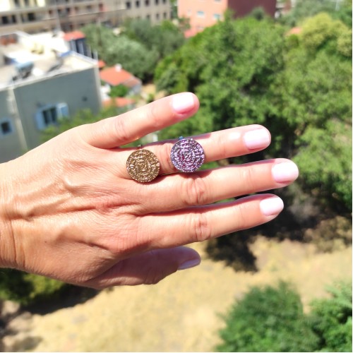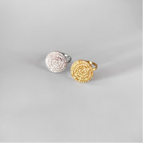 Ταξιδέψτε πίσω στον χρόνο με αυτό το μοναδικό ατσάλινο δαχτυλίδι, εμπνευσμένο από τον αρχαίο και μυστηριώδη Δίσκο της Φαιστού! Το περίτεχνο, ανάγλυφο σχέδιό του προσδίδει μια αίσθηση ιστορίας και μοναδικότητας σε κάθε εμφάνιση. Είναι ανοιγόμενο, χωρίς περιορισμό στο νούμερο, εφαρμόζοντας άνετα σε όλα τα δάχτυλα. Κατασκευασμένο από ανθεκτικό ατσάλι, δεν μαυρίζει και διατηρεί τη λαμπερή του χρυσή απόχρωση αναλλοίωτη στον χρόνο. Ιδανικό για λάτρεις της ιστορίας, της αρχαιολογίας ή όσους αναζητούν ένα κόσμημα με νόημα.