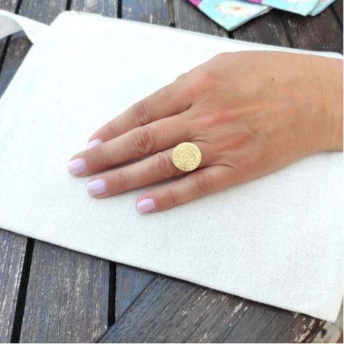 Ατσάλινο Δαχτυλίδι "Δίσκος της Φαιστού" σε χρυσό
