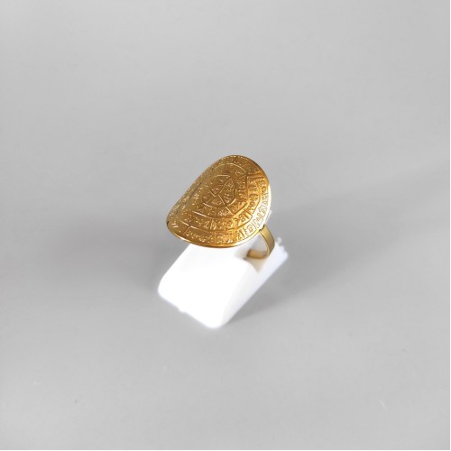 Ατσάλινο Δαχτυλίδι "Δίσκος της Φαιστού" Οβάλ σε χρυσό