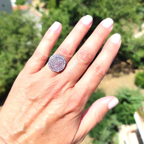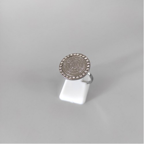 Ατσάλινο Δαχτυλίδι "Δίσκος Φαιστού" με Ζιργκόν σε ασημί