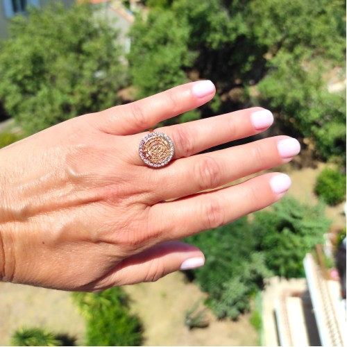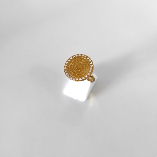Ατσάλινο Δαχτυλίδι "Δίσκος Φαιστού" με Ζιργκόν σε χρυσό