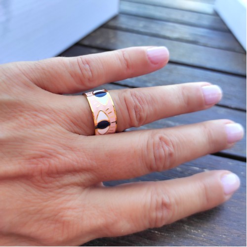 Πρόσθεσε μια δόση παιχνιδιάρικης κομψότητας στην εμφάνισή σου με το Ατσάλινο Δαχτυλίδι "Rose Eye". Αυτό το μοναδικό κόσμημα συνδυάζει την ανθεκτικότητα του ανοξείδωτου ατσαλιού με ένα απαλό, ροζ χρώμα και ένα μοντέρνο, αφαιρετικό σχέδιο, δημιουργώντας ένα αξεσουάρ που ξεχωρίζει. Το "Rose Eye" δαχτυλίδι είναι η τέλεια επιλογή για όσους αγαπούν τα χρώματα και αναζητούν ένα statement κομμάτι που εκφράζει προσωπικότητα και στυλ, είτε φοριέται μόνο του είτε σε συνδυασμό με άλλα αξεσουάρ.