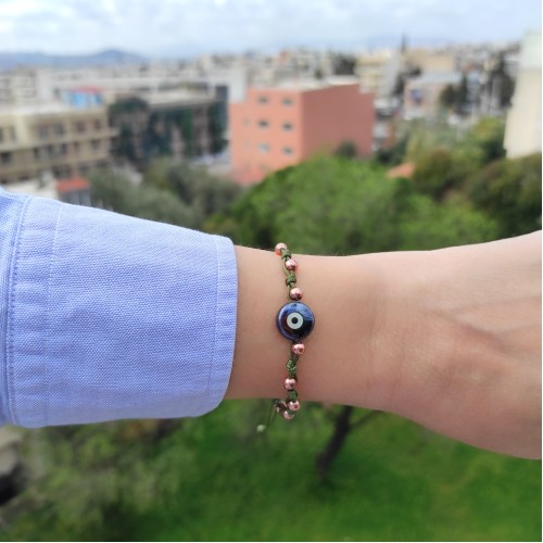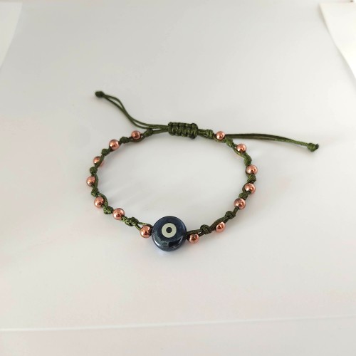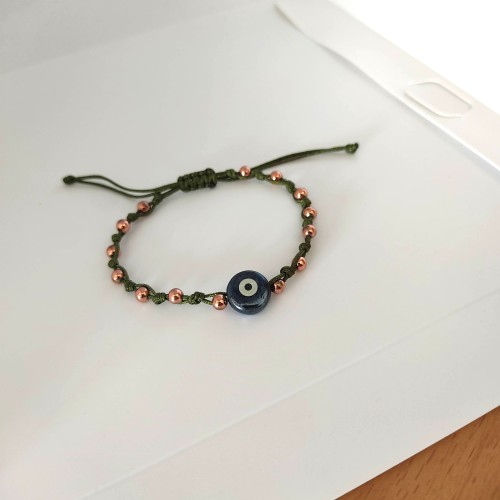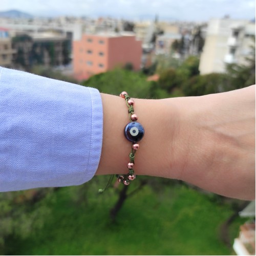 ο "Μάτι της Τύχης" είναι ιδανικό για καθημερινή χρήση, προσφέροντας προστασία και θετική ενέργεια. Φορέστε το μόνο του ή συνδυάστε το με άλλα βραχιόλια για ένα πιο προσωπικό στυλ." Το βραχιόλι δένει με ένα ρυθμιζόμενο κορδόνι (macrame), εξασφαλίζοντας άνετη εφαρμογή σε κάθε καρπό.