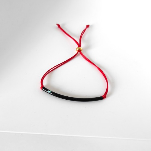 Το βραχιόλι "Minimal Red Bar" είναι ένα κομψό και διακριτικό κόσμημα, που ταιριάζει σε κάθε στυλ. Το μικροσκοπικό και διακριτικό ματάκι, προσδίδει μια διακριτική κομψότητα.Η απλή σχεδίασή του το καθιστά ιδανικό για καθημερινή χρήση, ενώ η αντίθεση μεταξύ του μαύρου και του κόκκινου προσθέτει μια πινελιά κομψότητας. Το βραχιόλι είναι δεμένο με ένα κόκκινο κορδόνι, το οποίο είναι ρυθμιζόμενο για να ταιριάζει σε διάφορα μεγέθη καρπού.