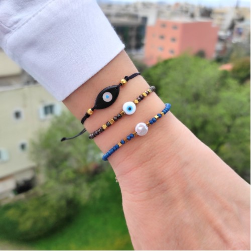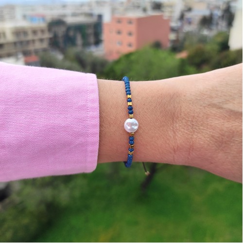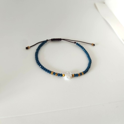 Το βραχιόλι "Μπλε Λάμψη" είναι ένα κόσμημα που συνδυάζει την ομορφιά και τον συμβολισμό, καθιστώντας το μια εξαιρετική επιλογή για δώρο ή για προσωπική συλλογή. Το βραχιόλι είναι δεμένο διακριτικά με ένα λεπτό κορδόνι, το οποίο είναι ρυθμιζόμενο για να ταιριάζει σε διάφορα μεγέθη καρπού.
