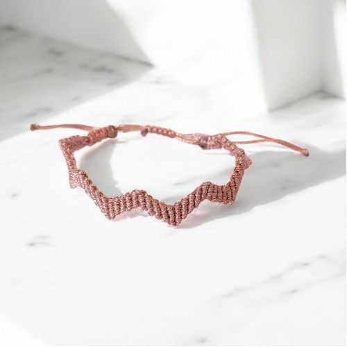 Το βραχιόλι "Bright Pink Macrame ZigZag" είναι ένα κόσμημα που συνδυάζει την παραδοσιακή τεχνική μακραμέ με ένα μοντέρνο και δυναμικό σχέδιο, το "ζιγκ-ζαγκ".Η πλέξη δημιουργεί μια σειρά από γωνίες και γραμμές, που σχηματίζουν ένα δυναμικό και γεωμετρικό μοτίβο. Το χρώμα του κορδονιού είναι λαμπερό ροζ, προσδίδοντας λάμψη και πολυτέλεια. Το κλείσιμο του βραχιολιού είναι ρυθμιζόμενο, για να ταιριάζει σε διαφορετικά μεγέθη καρπού.