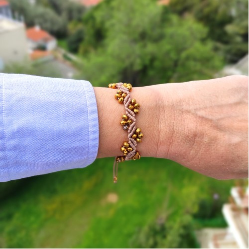 Βραχιόλι "Χρυσά Λουλούδια Μακραμέ"