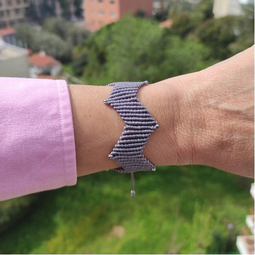 Βραχιόλι " Macrame Γκρί Zig Zag"
