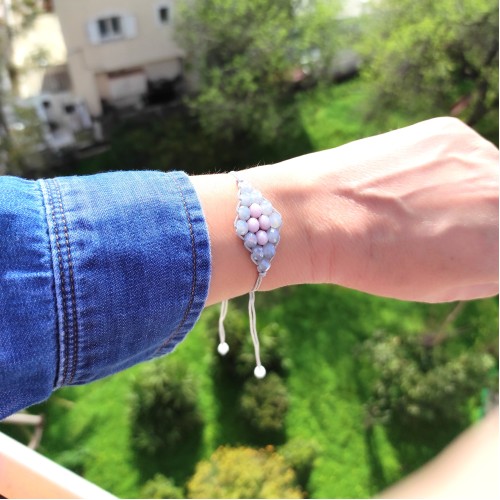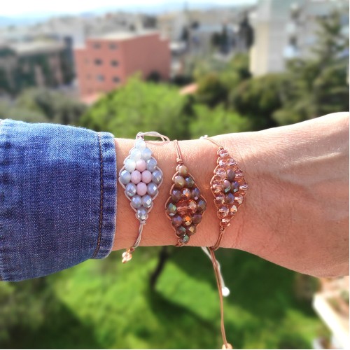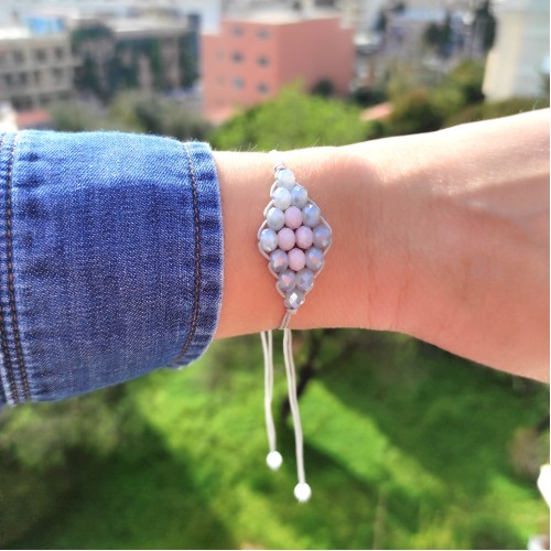 Αγκαλιάστε την διαχρονική κομψότητα με το χειροποίητο βραχιόλι "Γκρι Αρμονία". Ένα κόσμημα που συνδυάζει την αριστοκρατική γοητεία των γκρι και ροζ κρυστάλλων με την απαλή υφή του γκρι πλεκτού κορδονιού, δημιουργώντας ένα σύνολο που αποπνέει φινέτσα και διακριτική πολυτέλεια. Το κλείσιμο του βραχιολιού είναι ρυθμιζόμενο, για να ταιριάζει σε διαφορετικά μεγέθη καρπού.