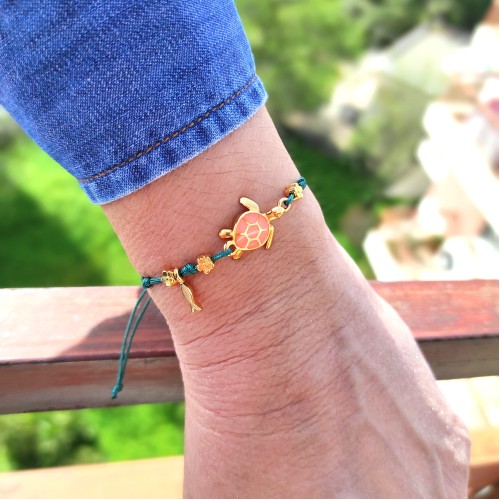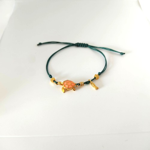 Το βραχιόλι "Χελώνα της Τύχης" φέρει μαζί του τον συμβολισμό της τύχης και της προστασίας. Η χελώνα συμβολίζει την μακροζωία, την σοφία και την προστασία, ενώ το ψάρι συμβολίζει την αφθονία και την καλή τύχη. Ο συνδυασμός αυτών των συμβόλων δημιουργεί ένα ισχυρό φυλαχτό που φέρνει τύχη, προστασία και θετική ενέργεια. Το κλείσιμο του βραχιολιού είναι ρυθμιζόμενο, για να ταιριάζει σε διαφορετικά μεγέθη καρπού.